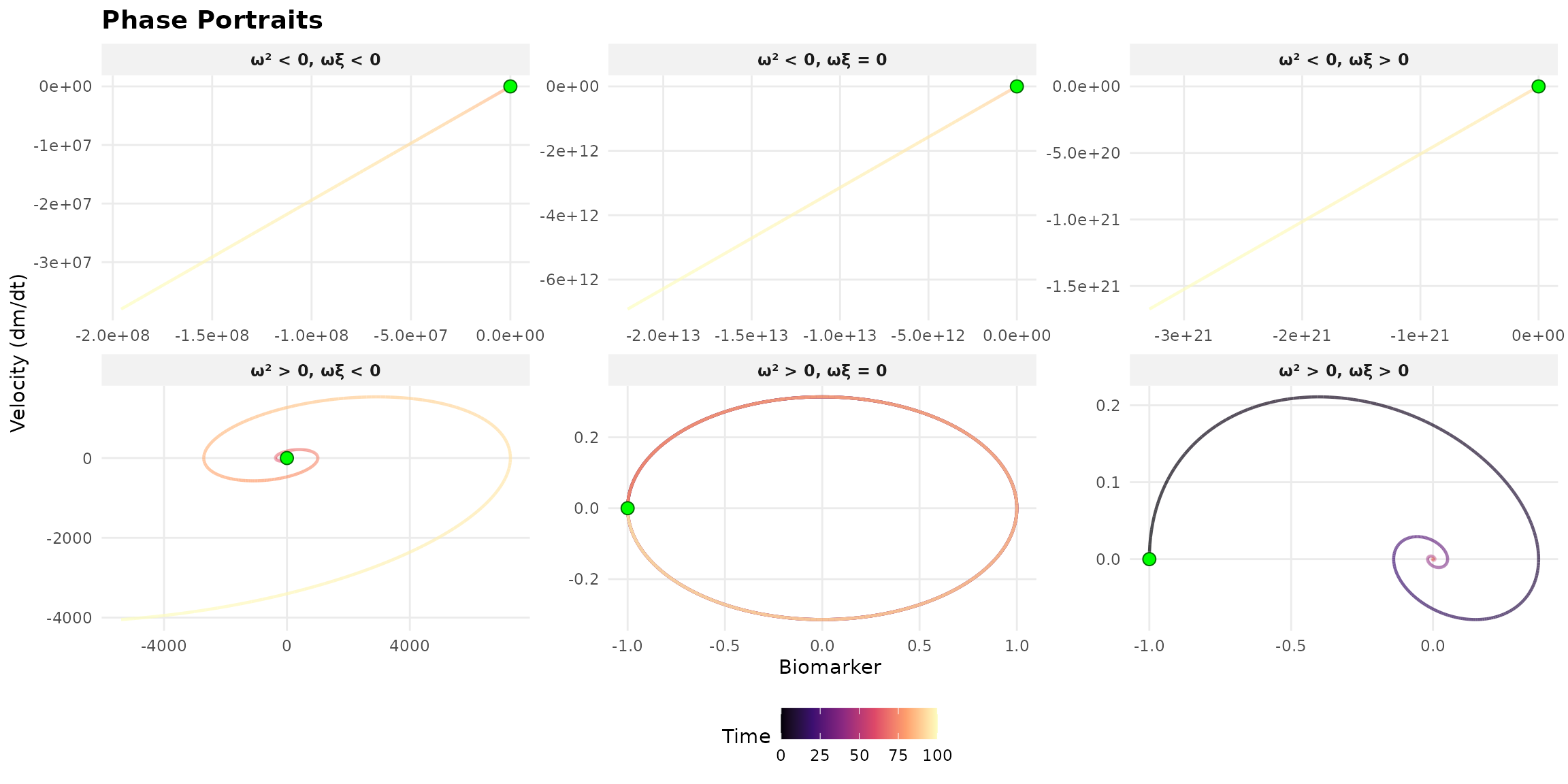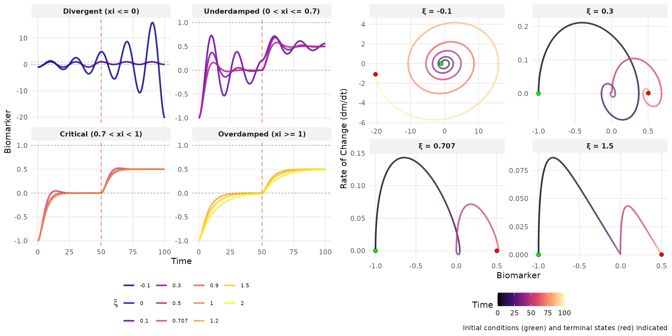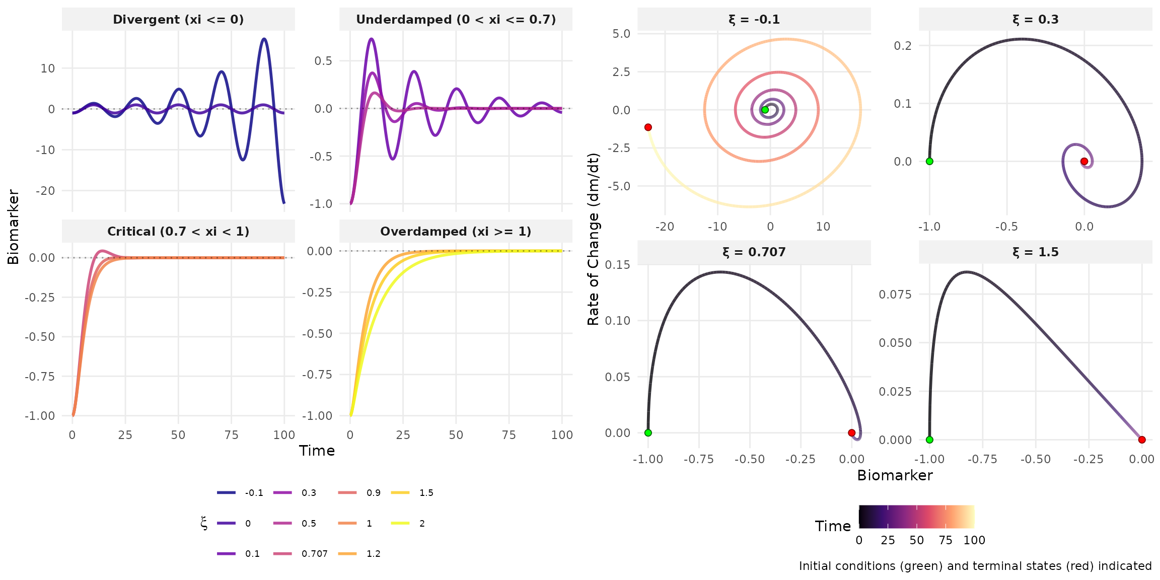 Remark: For oscillatory biomarker dynamics (\xi < 1), using absolute values prevents positive and negative velocity contributions from canceling in cumulative hazard calculations, ensuring that all variability contributes to risk assessment.